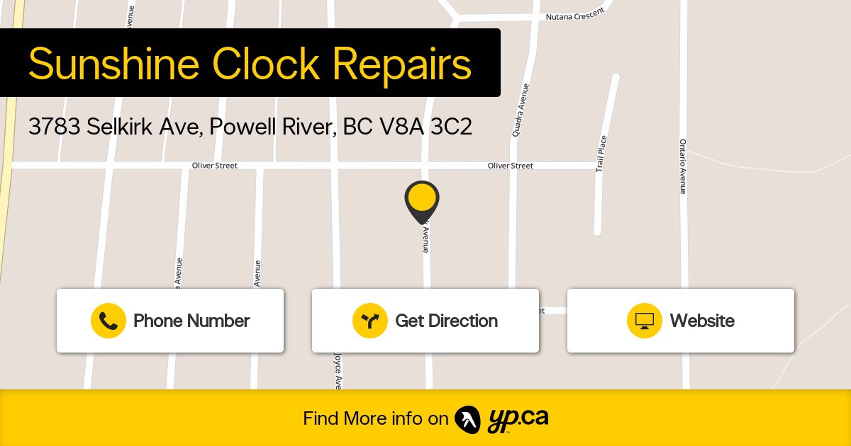 Sunshine Clock Repairs - Powell River - phone number, website & address - BC - Clock Repair, Clocks.