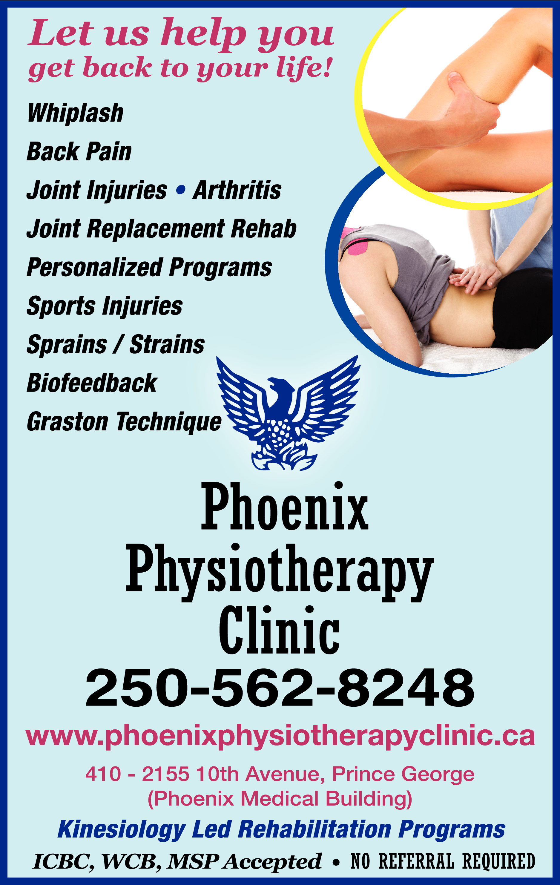 Phoenix Physiotherapy Clinic: Rising Above Pain, Rebuilding Your Health A dedicated physiotherapist in Prince George, we are proud to serve residents of Quesnel, Mackenzie and surrounding areas Phoenix Physiotherapy Clinic is dedicated to helping you rise above pain and achi…